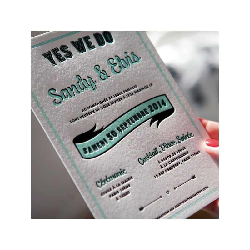 Prix de départ pour l'invitation seule en letterpress 2 couleurs: 400€ pour 50 exemplaires